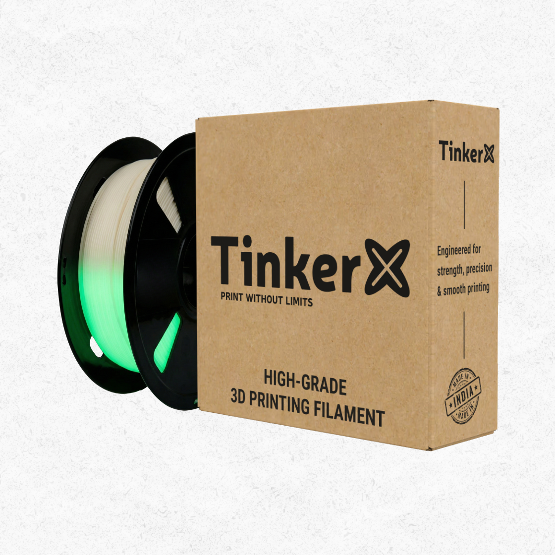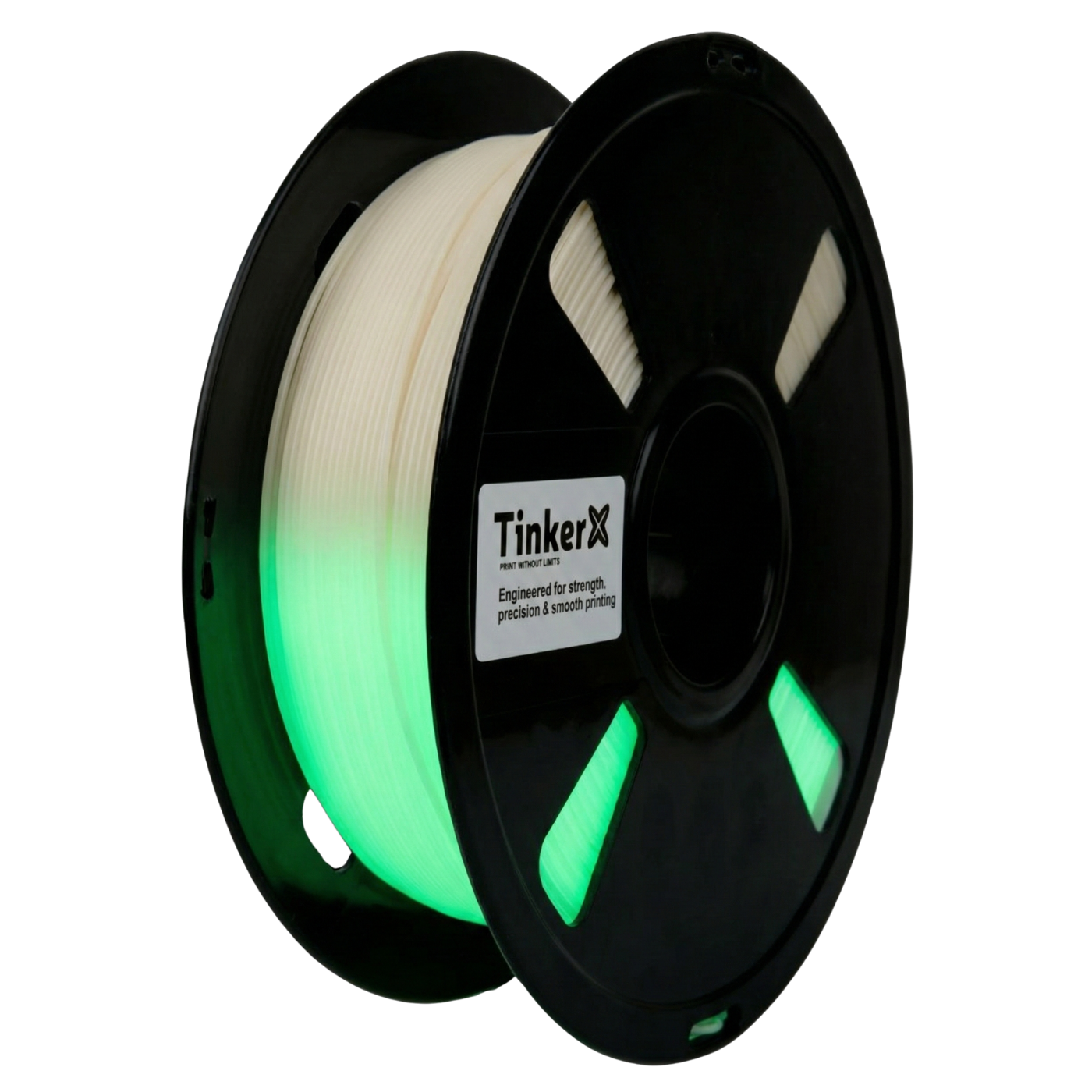 Bring a Glow In The Dark finish to your 3D prints with PLA Glow In The Dark filament. Charge it under sunlight or any bright light source, switch off the lights—and watch your creations come alive with a magical, luminous glow. This filament is perfect for architectural models, sculptures, decorative pieces, and artistic projects. It prints as easily as standard PLA+, offering a premium aesthetic, without the need for post-processing.